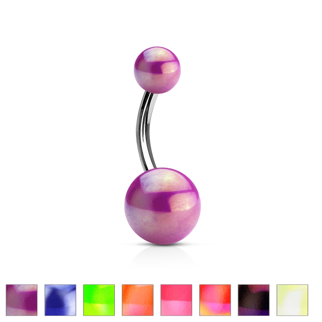 PIercing do pupíku PBK00157 s barevnými lesklými kuličkami. Piercing je vyrobený s chirurgické oceli 316L, kuličky z akrylátu.