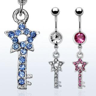 Piercing do pupíku je vyroben z kvalitní chirurgické oceli 316L a bižuterie. Banánek s klíčkem zbobený kamínky.