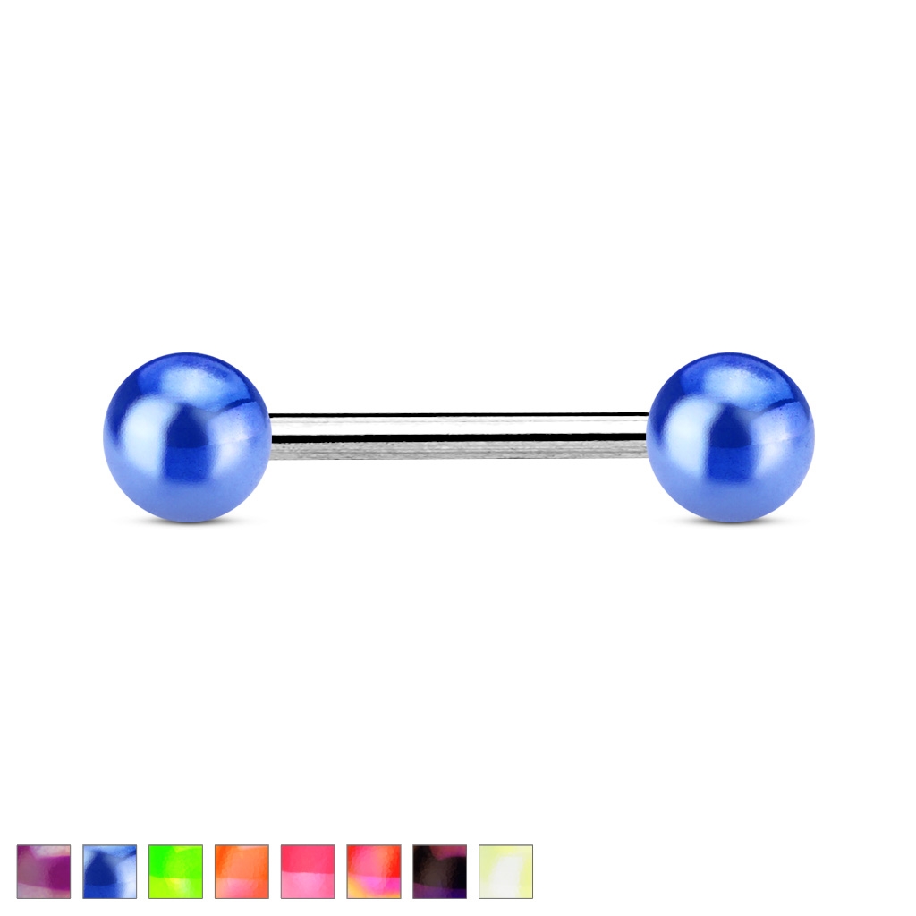 Činka do jazyku PCI00265 s barevnými lesklými kuličkami. Piercing je vyrobený z chirurgické oceli 316L.