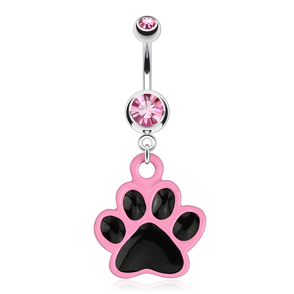 Piercing do pupíku s motivem psí tlapky PBV00578. Piercing je vyrobený z chirurgické oceli 316l.